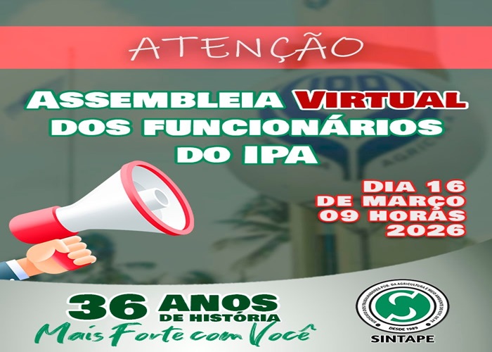 Pelo presente Edital, o Sindicato dos Trabalhadores Públicos da Agricultura e Meio Ambiente do Estado de Pernambuco – SINTAPE, convoca os empregados públicos do Instituto Agronômico de Pernambuco[...]