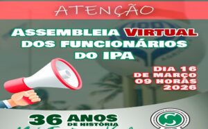 O Sindicato dos Trabalhadores Públicos da Agricultur a e Meio Ambiente do Estado de Pernambuco – SINTAPE, convoca os empregados públicos do Instituto Agronômico de Pernambuco – IPA, a fim de participarem da Assembleia Geral Extraordinária, a ser realizada no dia 16 de março do corrente ano, de forma virtual às 09:00h, em primeira convocação, com cinquenta por cento mais um dos associados e trinta minutos após o horário referido em segunda convocação, nos termos do que dispõe o Estatuto Sindical, para deliberarem sobre a seguinte pauta: